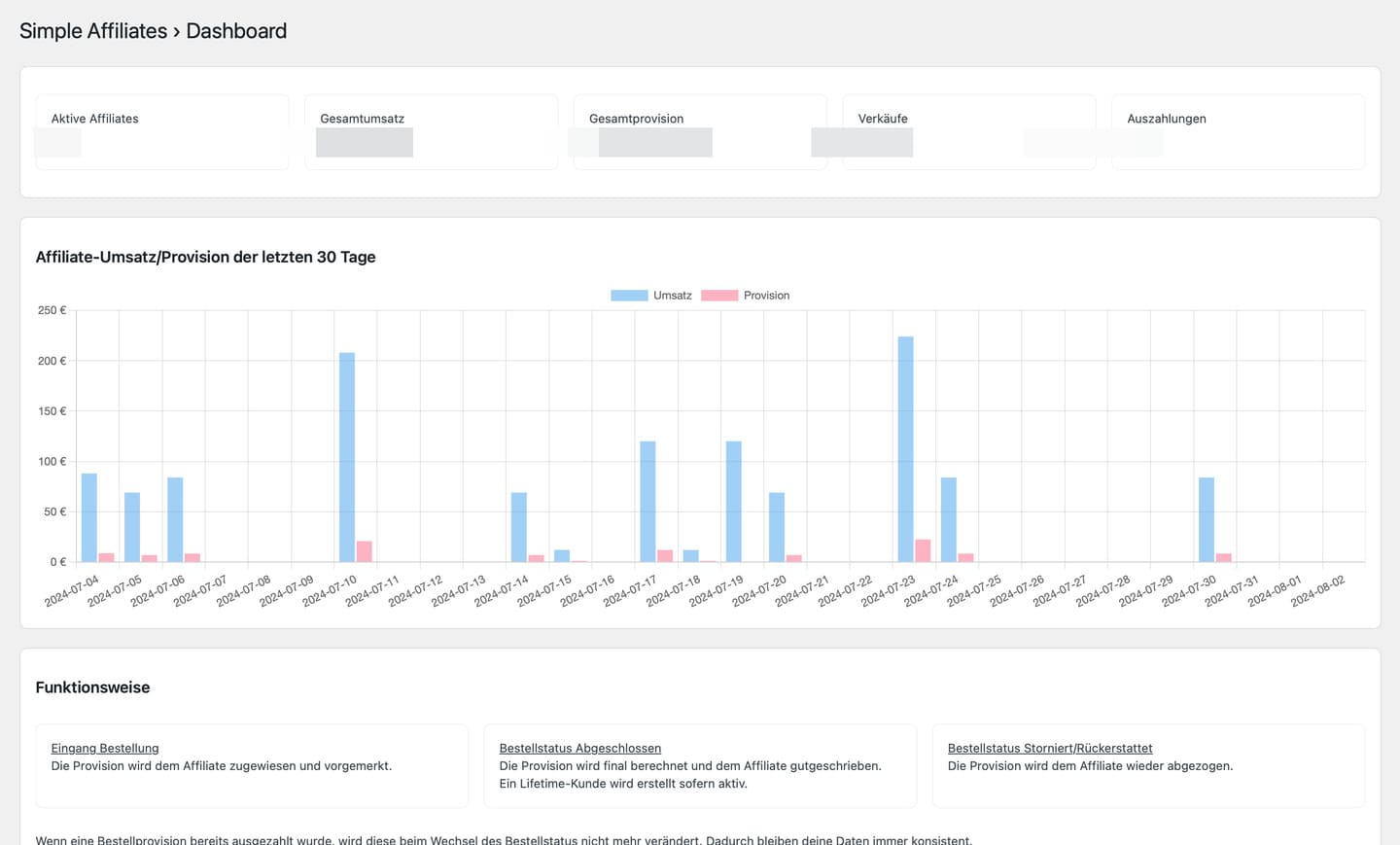 Mit dem „Simple Affiliates for WooCommerce“-Plugin machst du Affiliate-Marketing effizient und benutzerfreundlich. Steigere deinen Umsatz, behalte den Überblick und biete deinen Affiliates eine erstklassige Erfahrung.