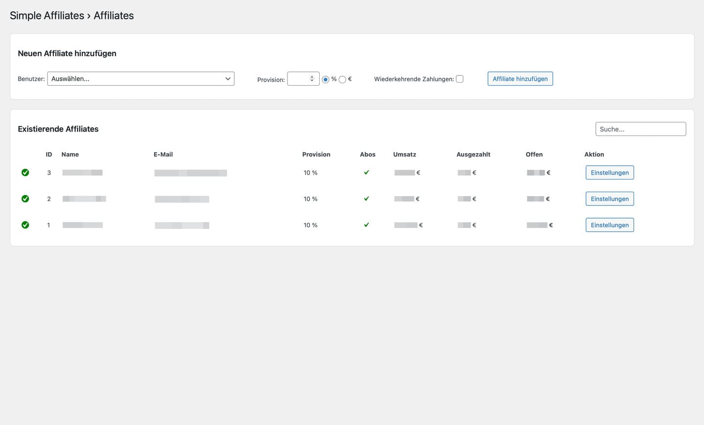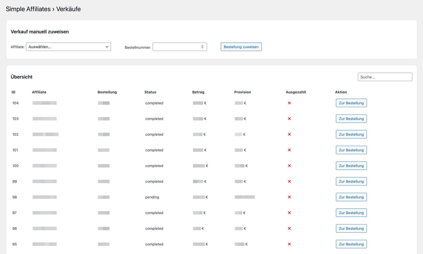 - Verwaltung von Affiliates, Verkäufen und Auszahlungen