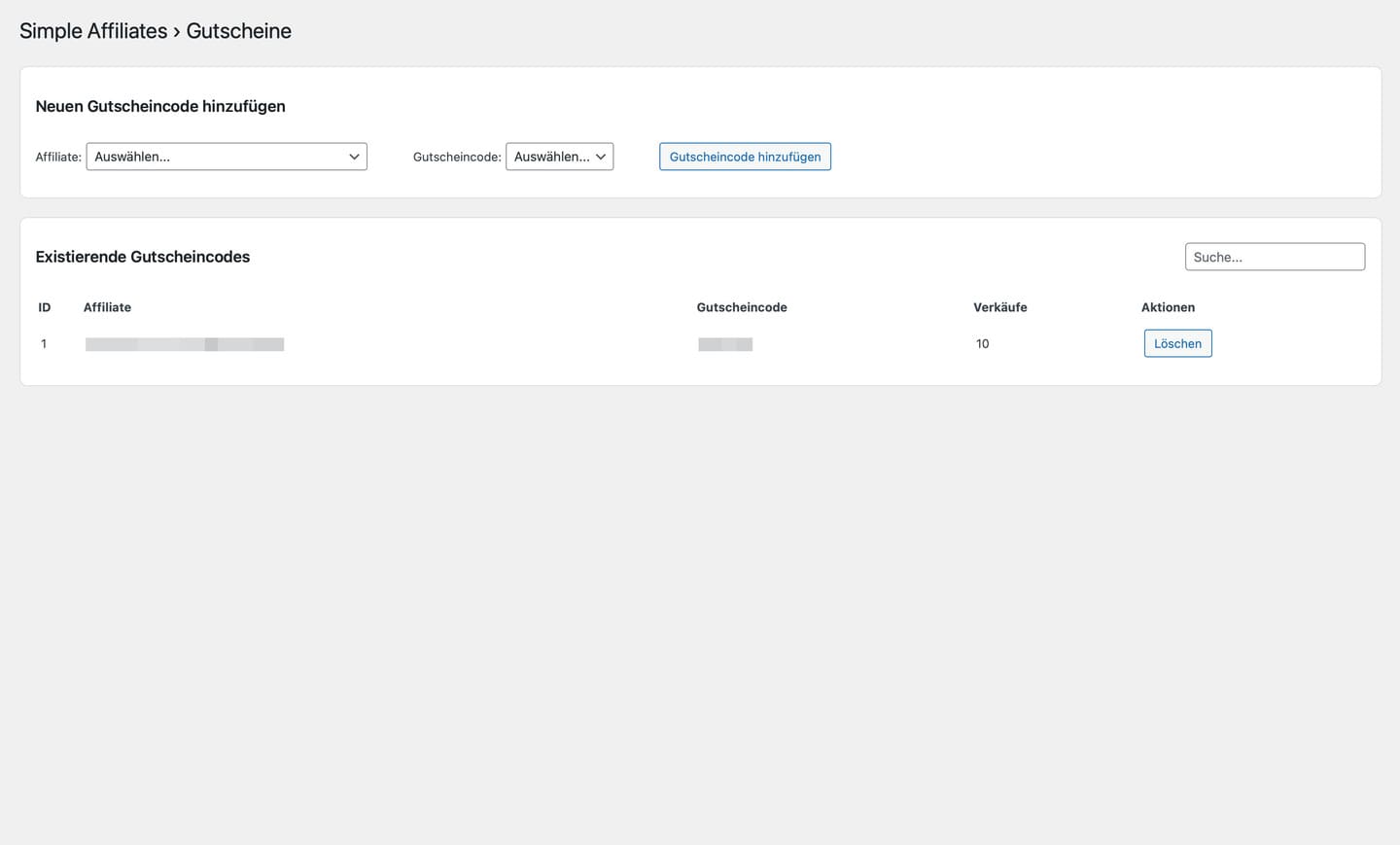 - Shopbetreiber können Affiliates über WooCommerce erstellte Gutscheine zuweisen. Diese werden bei Bestelleingang automatisch getrackt und die Provision dem Affiliate gutgeschrieben. Dies hat den großen Vorteil, dass hierfür keine Affiliate-URL benötigt wird.